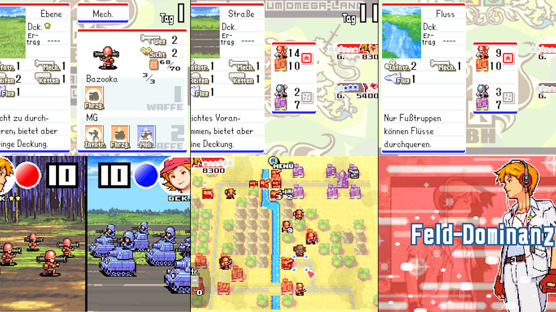 Schon einige Teile vorher kamen die KO-Gaben dazu. KO steht hier kurz für den Kommandanten, den man teilweise vor einem Gefecht auswählen kann. Ist ihre Leiste dafür voll, können sie eine Spezialfähigkeit zünden, wodurch eigene Einheiten für eine Runde Boni bekommen, meist passend zu den Charakteristika des KO. In Dual Strike wurde der zweite Bildschirm des DS dahingehend genutzt, das zeitgleich zwei Gefechte oder allgemein Ereignisse stattfinden können, dann ersichtlich auf dem oberen Bildschirm. Der Touchscreen wird gut eingebunden, wobei ich meist mit einer Mischung aus Touch und Tasten gespielt habe, weil ich dann doch unabsichtlich die ein oder andere Fehleingabe gemacht habe.