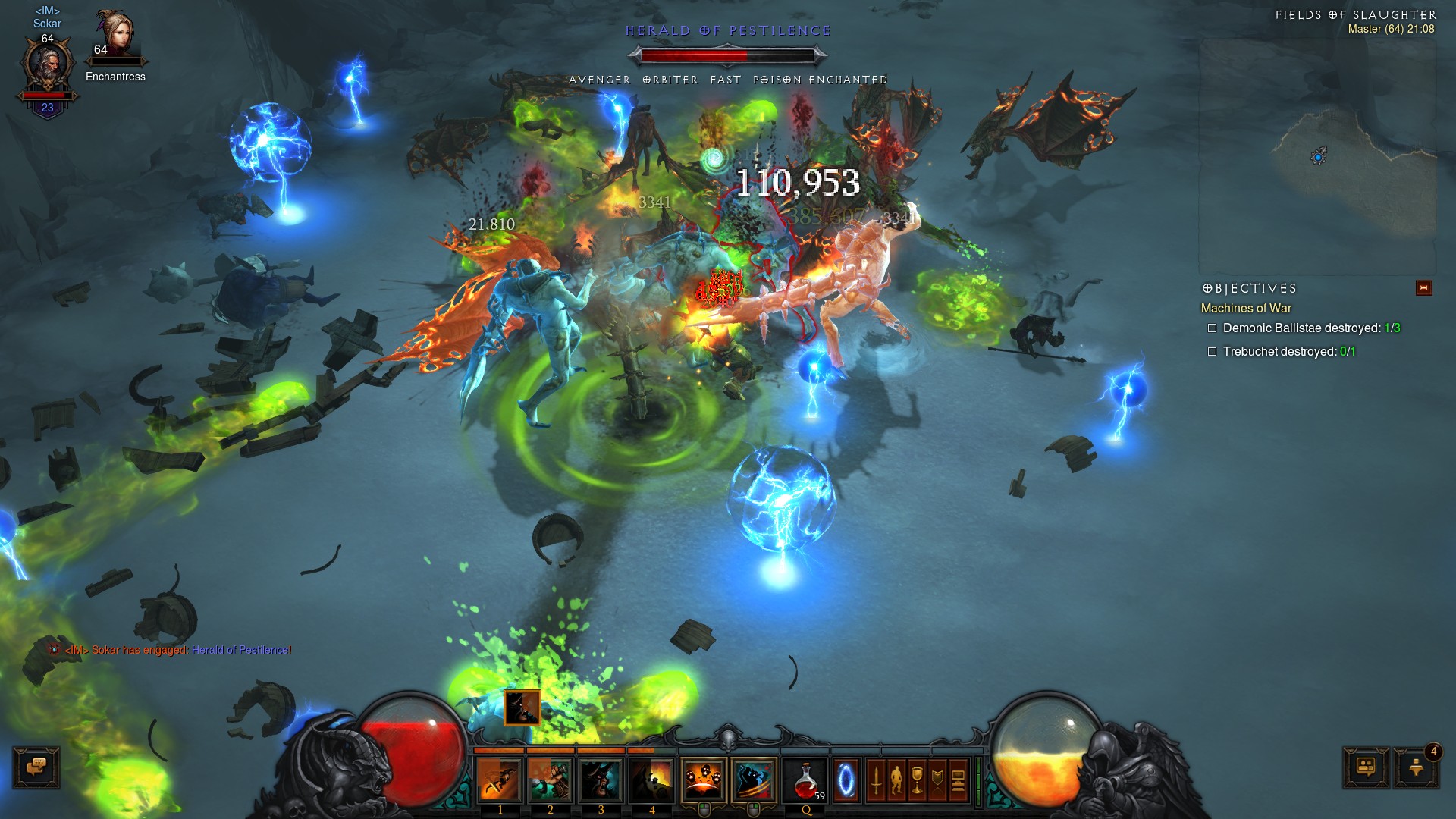 Das grundlegende Spielprinzip hat sich nicht geändert, noch immer schnetzelt man sich durch Horden von Gegnern, seien es hier in den Häuserschluchten, einem überdimensionalen Friedhof oder dem Sumpf der Blutmarschen. Zu jedem Abschnitt gibt es eine Reihe neuer Gegner, welche viel Abwechslung ins Spiel bringen. Auch die Ziele der Hauptquests sind nicht mehr so geradlinig wie im Hauptspiel sondern bieten einiges an Abwechslung und Variation für mehrere Durchgänge. Das neue Beute-System macht sich schnell bemerkbar, schon nach kurzer Zeit und gefühlt viel häufiger findet man legendäre Gegenstände, da nach wie vor alles zufällig generiert ist aber auch viel Schrott, generell aber weniger je qualitativ höher die Gegenstände sind – hier wurde der Zufallsfaktor etwas eingegrenzt. Und selbst wenn die meisten Werte passen, aber nur eine oder zwei suboptimal ist kann die neue Mystikerin helfen: neben ihrer Fähigkeit das Aussehen des Gegenstands anzupassen (die werden charakterweit in einem eigenen Archiv gespeichert werden, zum einen levelabhängige Gegenstände und gefunden legendäre Gegenstände) kann sie eine Wert durch einen anderen ersetzten. Das kostet Gold oder seltene Materialien und in welchen geändert wird ist zufällig. Der Schmied ist nur wenig besser, ein paar der hochstufigen Gegenstände sind durchaus brauchbar, Ausschuss wird man aber trotzdem mehr als genug produzieren. Der Juwelier kann nun auch mehr als nur Edelsteine zu qualitativ besseren zusammen zu fassen, er kann nun auch Amulette herstellen mit einer besseren Quote als der Schmied.